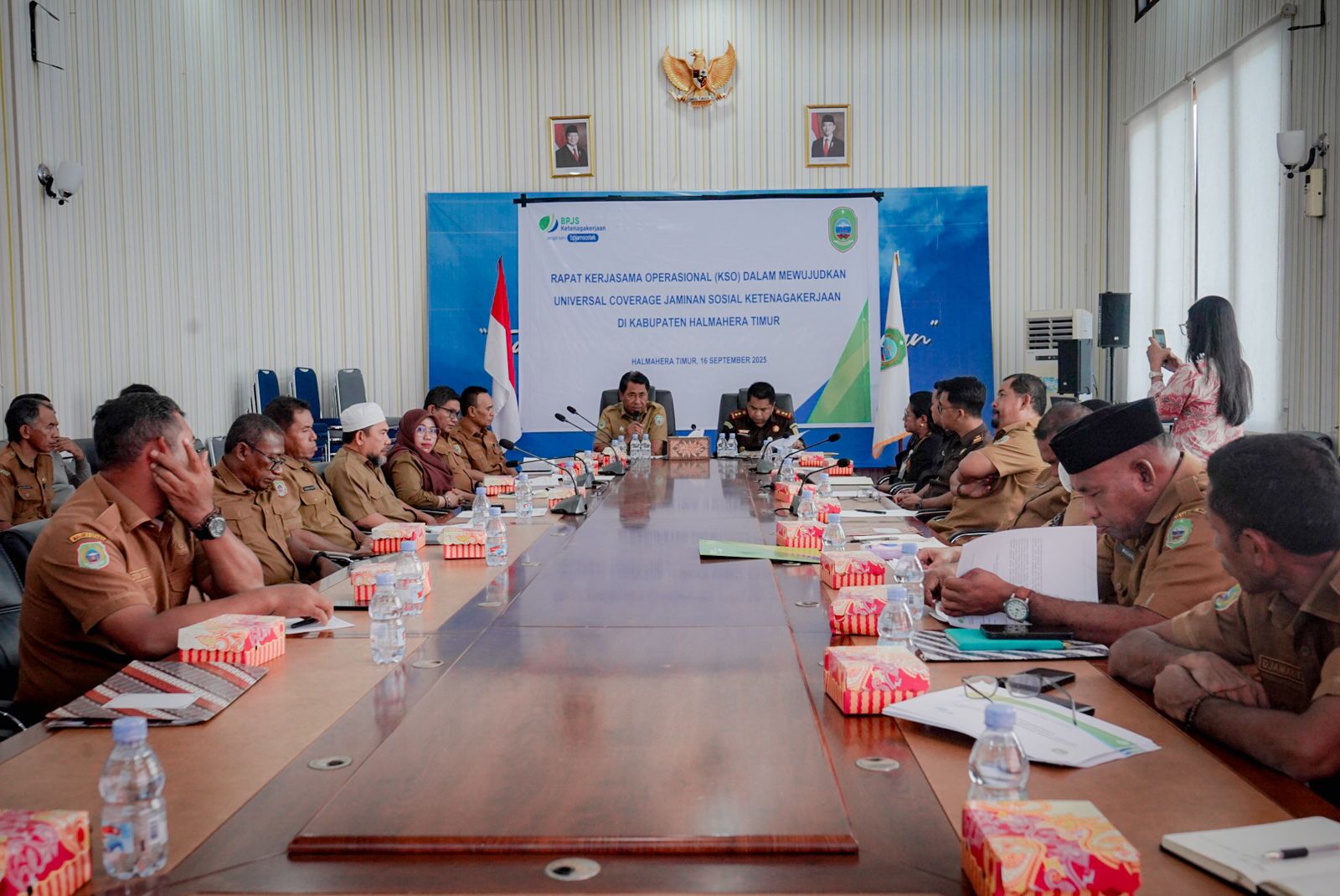 Rapat itu dihadiri Kepala Kejaksaan Negeri Halmahera Timur Satria Irawan, Kepala BPJS Ketenagakerjaan Halut Zippora Lilian Wallyd, para Asisten Bupati serta Pimpinan OPD Lingkup Pemerintahan Kabupaten Halmahera Timur, bertempat di ruang Esselon lantai II, Selasa (16/09/2025).