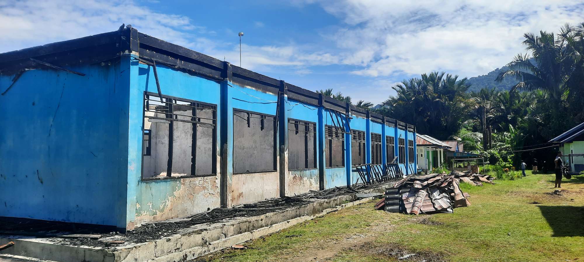 “Gedung ini ada tiga ruangan yang digunakan untuk ruang kelas 10. Jadi 10A, 10B dan 10C itu pakai gedung ini. Semua terbakar termasuk kursi meja walaupun tidak banyak karena sebagian sudah dipakai di ruang kelas 12 untuk ujian,“ jelas Koten.