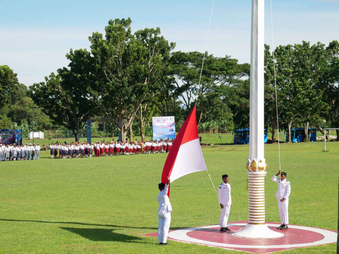 Upacara bendera dihadiri Wakil Bupati Anthonius Alex Marani bersama Sekda Aser Waroi dan seluruh jajaran ASN hingga tingkat kampung.