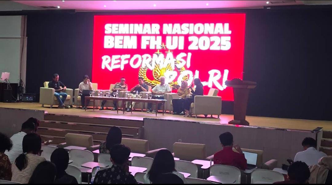 Depok, kabartimur.com – Badan Eksekutif Mahasiswa Fakultas Hukum Universitas Indonesia (BEM FH UI) 2025 menggelar Seminar Nasional bertema “Reformasi Polri: Urai Problematika Sekarang, Reformasi Polri Segera” di Auditorium Djokosoetono, Kampus FH UI Depok, Kamis (13/11/2025). Kegiatan berlangsung pukul 13.30–17.30 WIB dan menjadi ruang dialog mengenai pembaruan institusi kepolisian dari perspektif akademisi, pemerintah, dan masyarakat sipil.