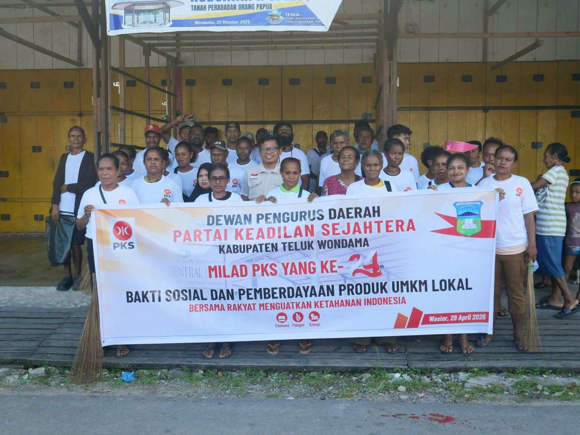 WASIOR, Kabartimur.com – Dewan Pimpinan Daerah Partai Keadilan Sejahtera (DPD PKS) Kabupaten Teluk Wondama Papua Barat, Rabu (29/4/2026) menggelar bakti sosial membersihkan kawasan Pasar Sentral Iriati di kota Wasior.