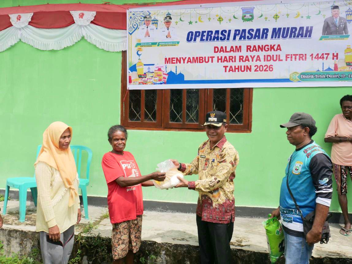 Distrik/kecamatan Teluk Duairi menjadi wilayah pertama sasaran pasar murah. Kegiatan ini dibuka oleh Wakil Bupati Anthonius Alex Marani, Kamis (12/3) di Kantor Kampung Sobey Indah.
