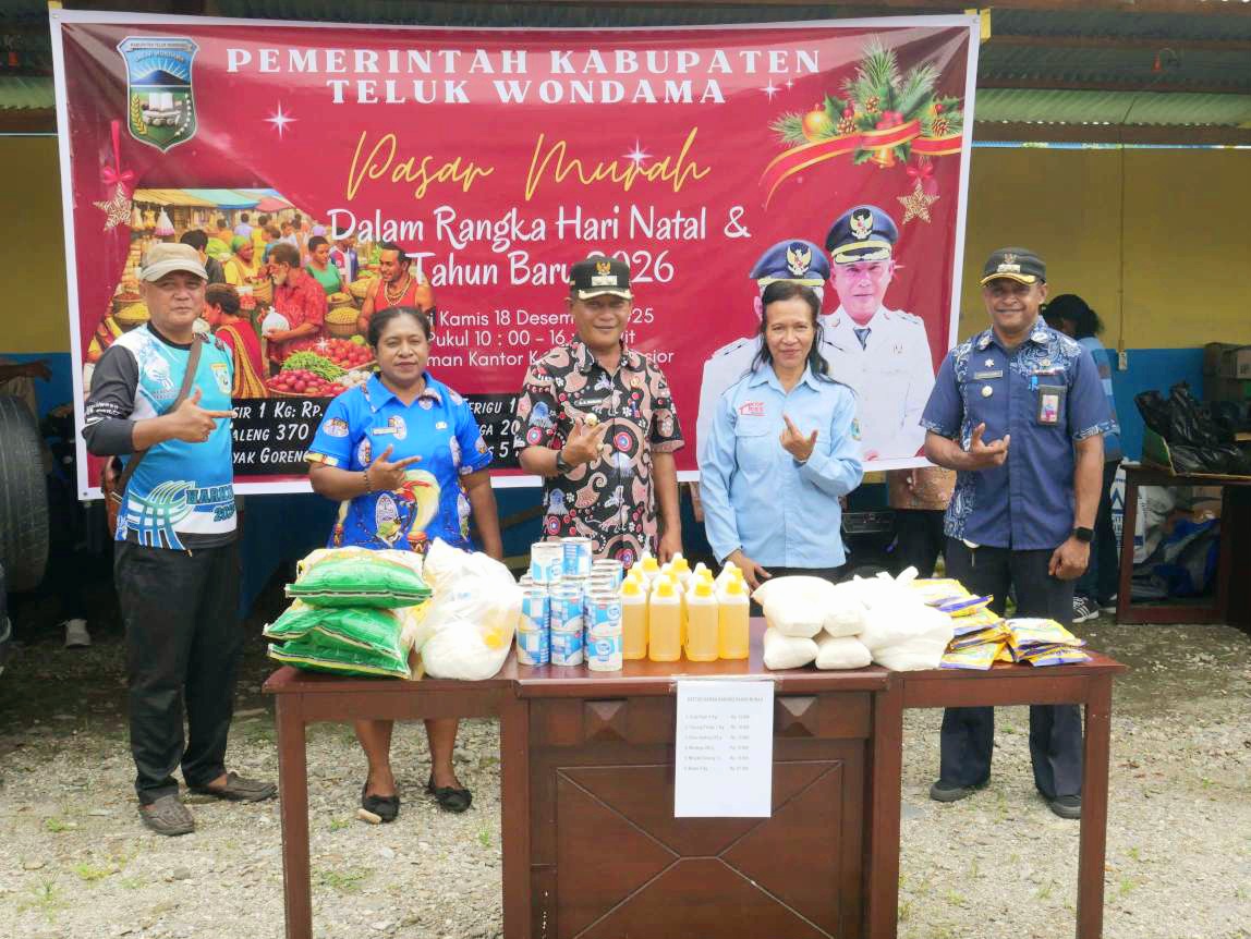 WASIOR, Kabartimur.com – Pemerintah Kabupaten Teluk Wondama, Papua Barat menyalurkan 200 paket barang kebutuhan pokok (bapok) murah bagi masyarakat dalam kegiatan Pasar Murah menyambut Natal dan Tahun Baru (Nataru) 2025-2026.
