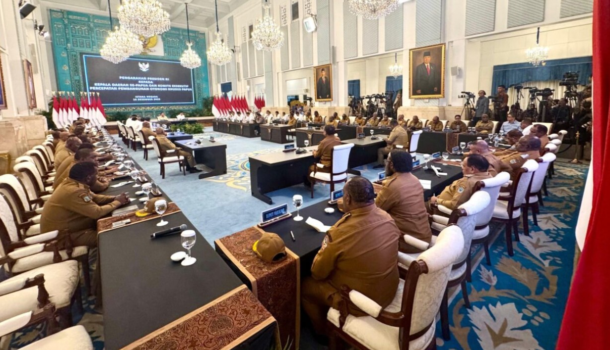 Jakarta, kabartimur.com- Presiden Prabowo Subianto menerima laporan mengenai langkah-langkah strategis yang telah dan akan dilakukan pemerintah dalam rangka percepatan pembangunan Otonomi Khusus Papua. Laporan tersebut disampaikan Menteri Dalam Negeri Tito Karnavian kepada Presiden Prabowo dalam Pengarahan Presiden RI kepada Kepala Daerah se-Papua dan Komite Eksekutif Percepatan Pembangunan Otonomi Khusus Papua (KEPP OKP) di Istana Negara, Jakarta, pada Selasa, 16 Desember 2025.