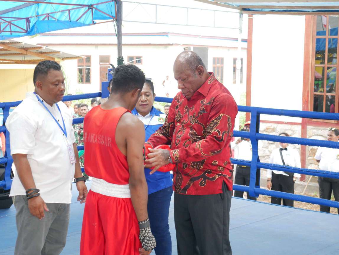 Ketua Pertina Provinsi Papua Barat Boy Baransano yang hadir langsung dalam acara pembukaan mengapresiasi insiatif Pemkab Teluk Wondama bersama pengurus Pertina menggelar kejuaraan tinju amatir dalam rangka HUT ke-23 Kabupaten Teluk Wondama.