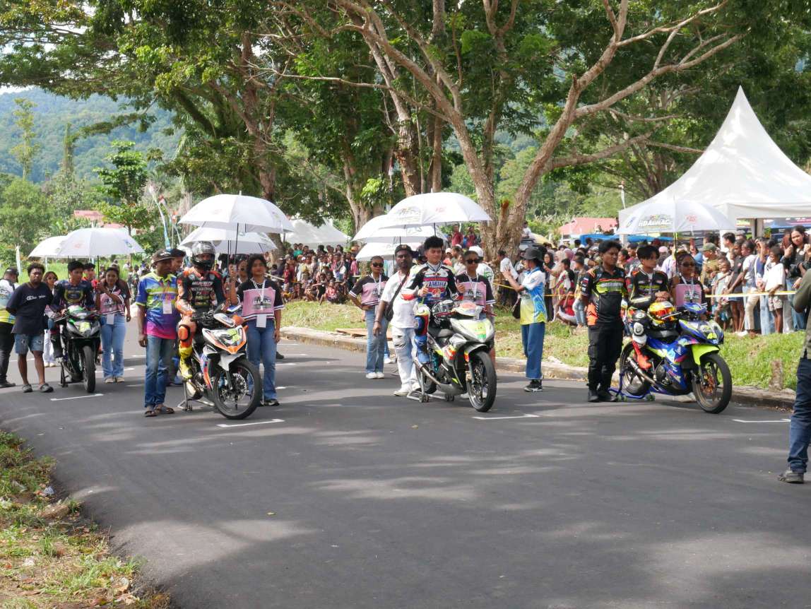Bupati Elysa Auri didampingi Wakil Bupati Anthonius Alex Marani membuka secara resmi ajang balap motor itu di sirkuit dadakan kompleks Kantor Bupati Teluk Wondama di Rasiei, Jumat (10/4) sore.