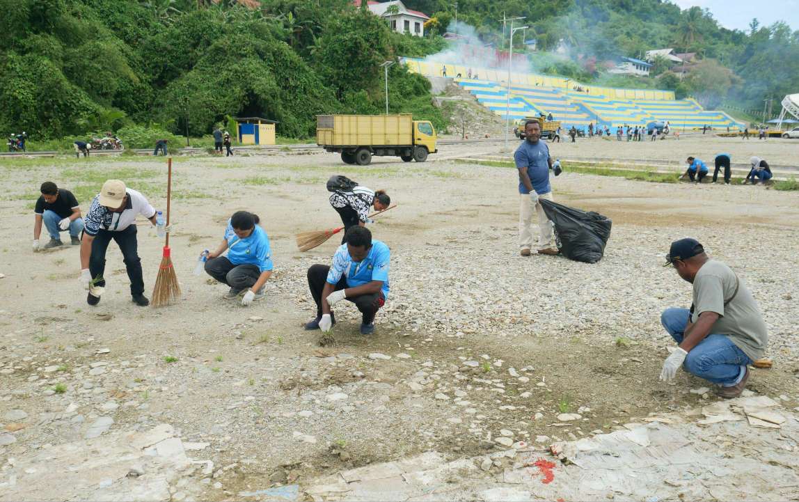 Ratusan ASN bersama warga jemaat membersihkan kawasan situs rohani bersejarah itu meliputi lapangan Aitumeiri beserta taman di sekitarnya, areal Situs Batu Peradaban hingga di sekeliling rumah peninggalan Pendeta Izaac Samuel Kijne.