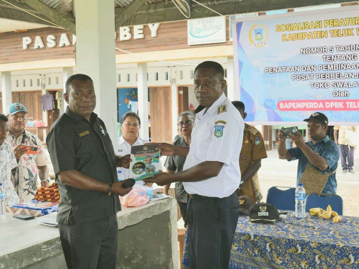 WASIOR, Kabartimur.com– Badan Pembentukan Peraturan Daerah (Bapemperda) DPR Kabupaten Teluk Wondama (DPRK), Papua Barat melakukan sosialisasi peraturan daerah nomor 5 tahun 2023 tentang Penataan dan Pembinaan Pasar Rakyat, Pusat Perbelanjaan dan Toko Swalayan, Rabu (3/12/2025).