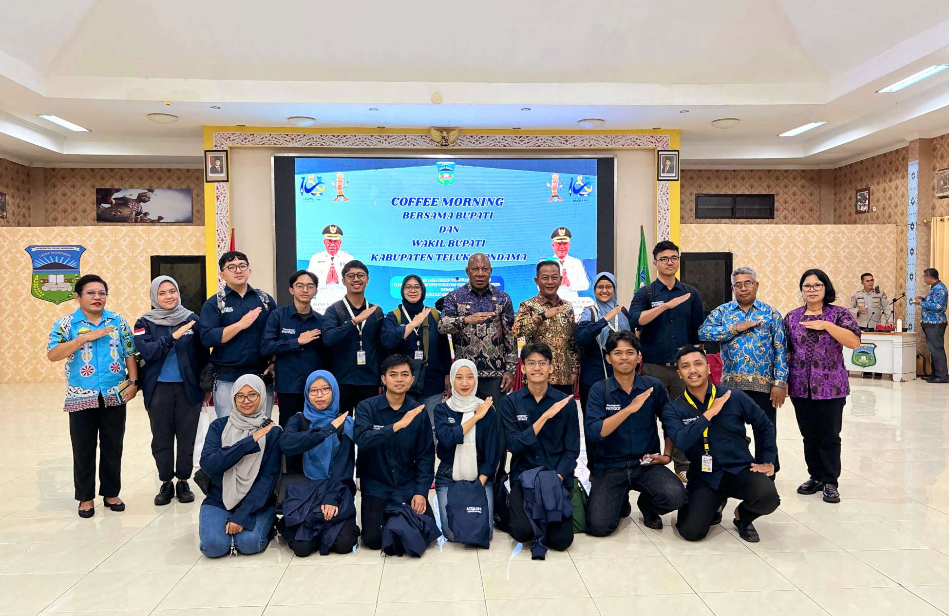 Bupati Elysa Auri bersama Wakil Bupati Anthonius Alex Marani bersama kepala suku serta jajaran Pemerintah Daerah menyambut langsung kedatangan Tim Ekspedisi Patriot dalam acara Coffee Morning di Gedung Sasana Karya, Kantor Bupati Teluk Wondama di Rasiei, baru-baru ini.