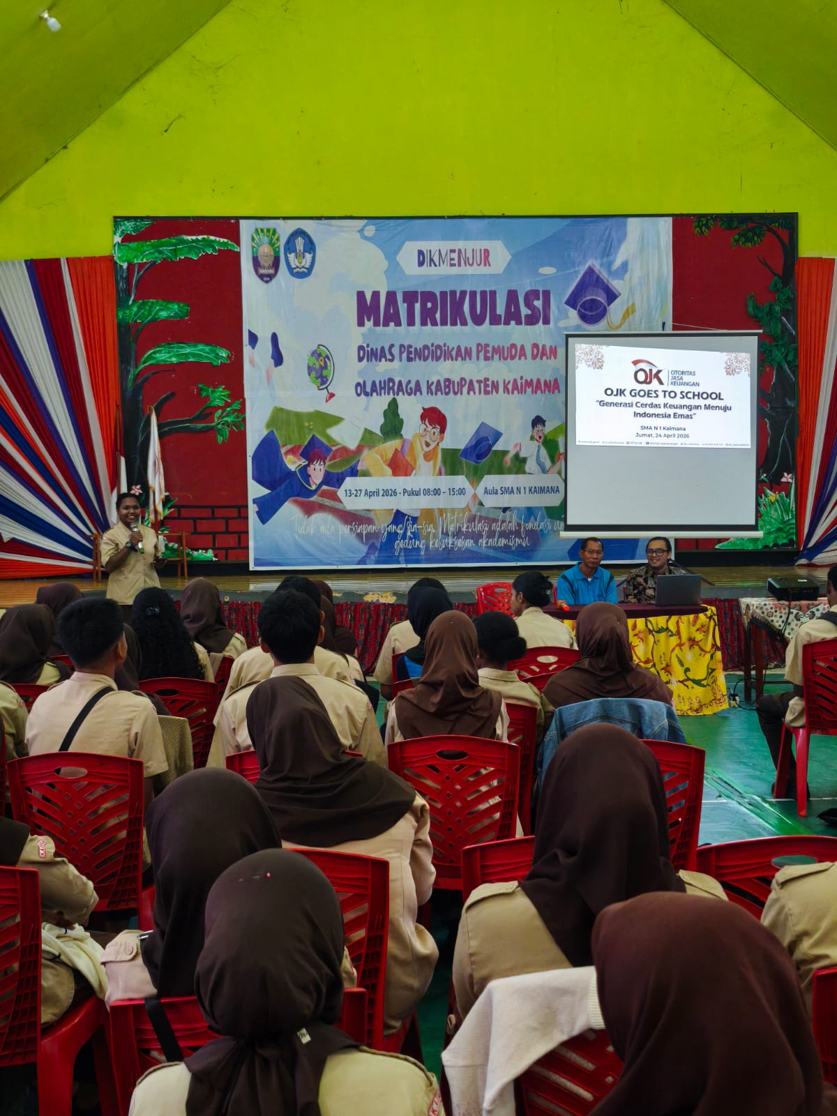 Rangkaian kegiatan tersebut ditutup dengan program OJK Goes to School yang dilaksanakan di SMA Negeri 1 Kaimana, Kamis (24/4/2026). Program ini bertujuan mendorong generasi muda memahami pentingnya pengelolaan keuangan sejak dini.