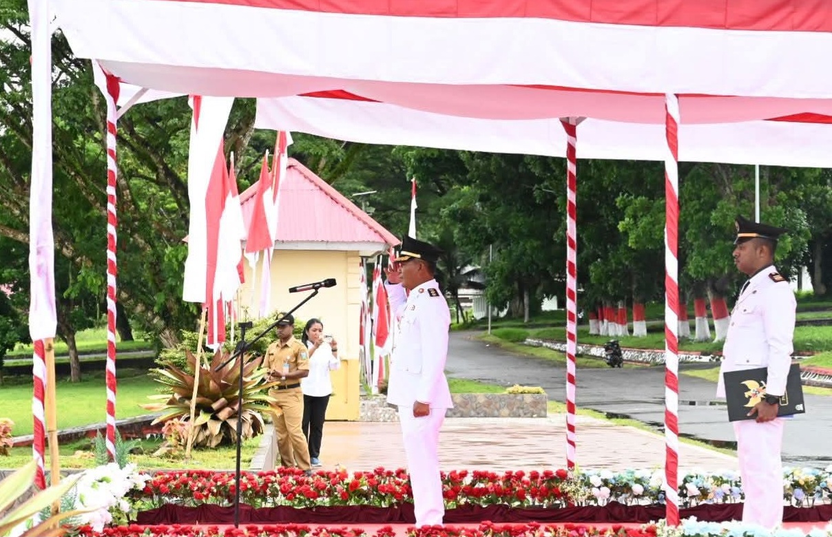 Kemudian pembacaan Teks Pancasila oleh Wakil Bupati, Pembukaan UUD 1945 oleh Kabag Organisasi dan Tata Laksana Setda Yulius Korowa serta pembacaan pesan-pesan pahlawan.