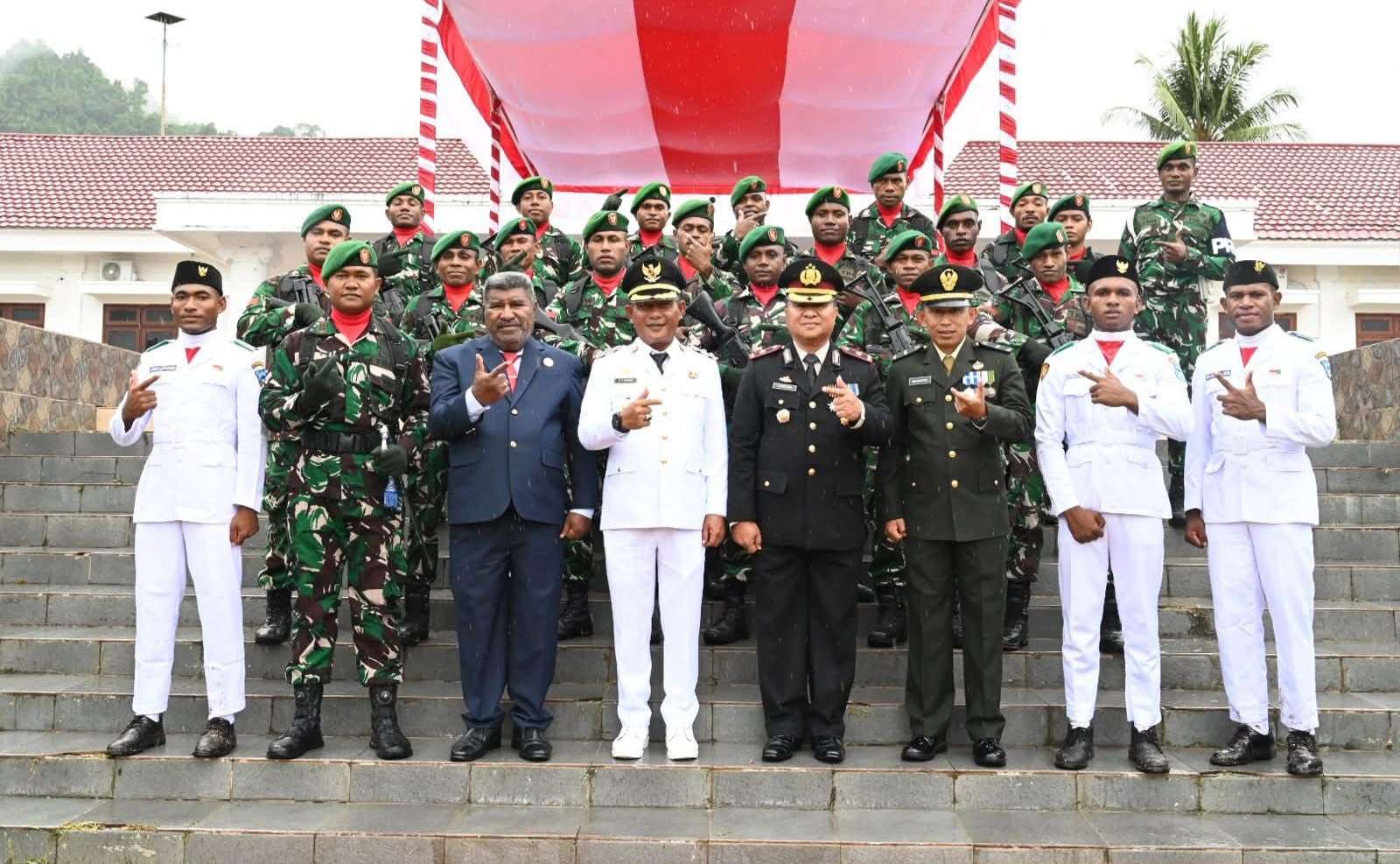 Bertindak selaku Komandan Upacara Danramil Wasior Kapten Inf Rocki Siregar. Turut hadir, Wakil Ketua DPRK Teluk Wondama Soleman JP.Karubuy bersama sejumlah anggota DPRK dan Wakapolres Kompol Christianus Masalle.