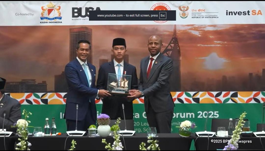 Gibran juga menyinggung kunjungan Presiden Afrika Selatan Cyril Ramaphosa ke Indonesia beberapa waktu lalu, yang menurutnya mencerminkan kedekatan hubungan kedua negara. Baik Presiden Ramaphosa maupun Presiden Prabowo, katanya, telah menyatakan komitmen untuk memperkuat kolaborasi di masa depan.