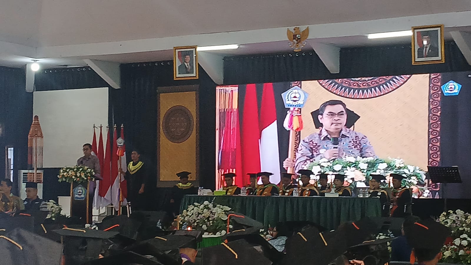 Sebagai tamu kehormatan, Bupati Tana Toraja dr. Zadrak Tombeg menyampaikan sambutan inspiratif yang menekankan tanggung jawab para sarjana baru terhadap pelestarian budaya Toraja. Dalam pidatonya, Zadrak secara khusus mengingatkan tentang maraknya peristiwa “eksekusi” atau pembongkaran rumah adat Tongkonan di berbagai pelosok Toraja belakangan ini.
