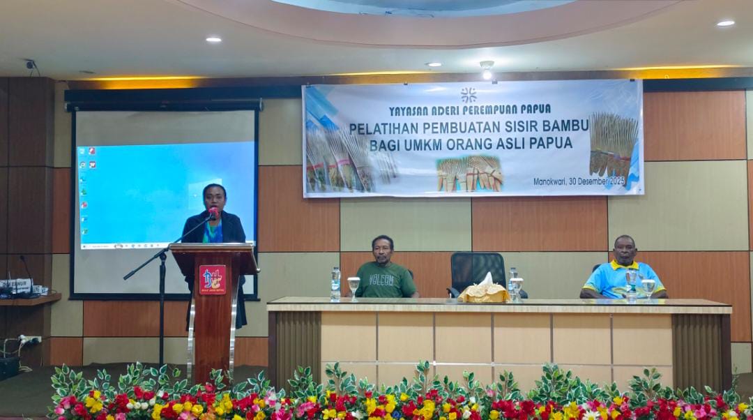 Manokwari, kabartimur.com – Yayasan Aderi Perempuan Papua menggelar pelatihan pembuatan sisir bambu bagi pelaku Usaha Mikro, Kecil, dan Menengah (UMKM) Orang Asli Papua (OAP). Kegiatan tersebut dilaksanakan di Hotel Billy Jaya, Jalan Merdeka, Manokwari, Selasa (30/12/2025).